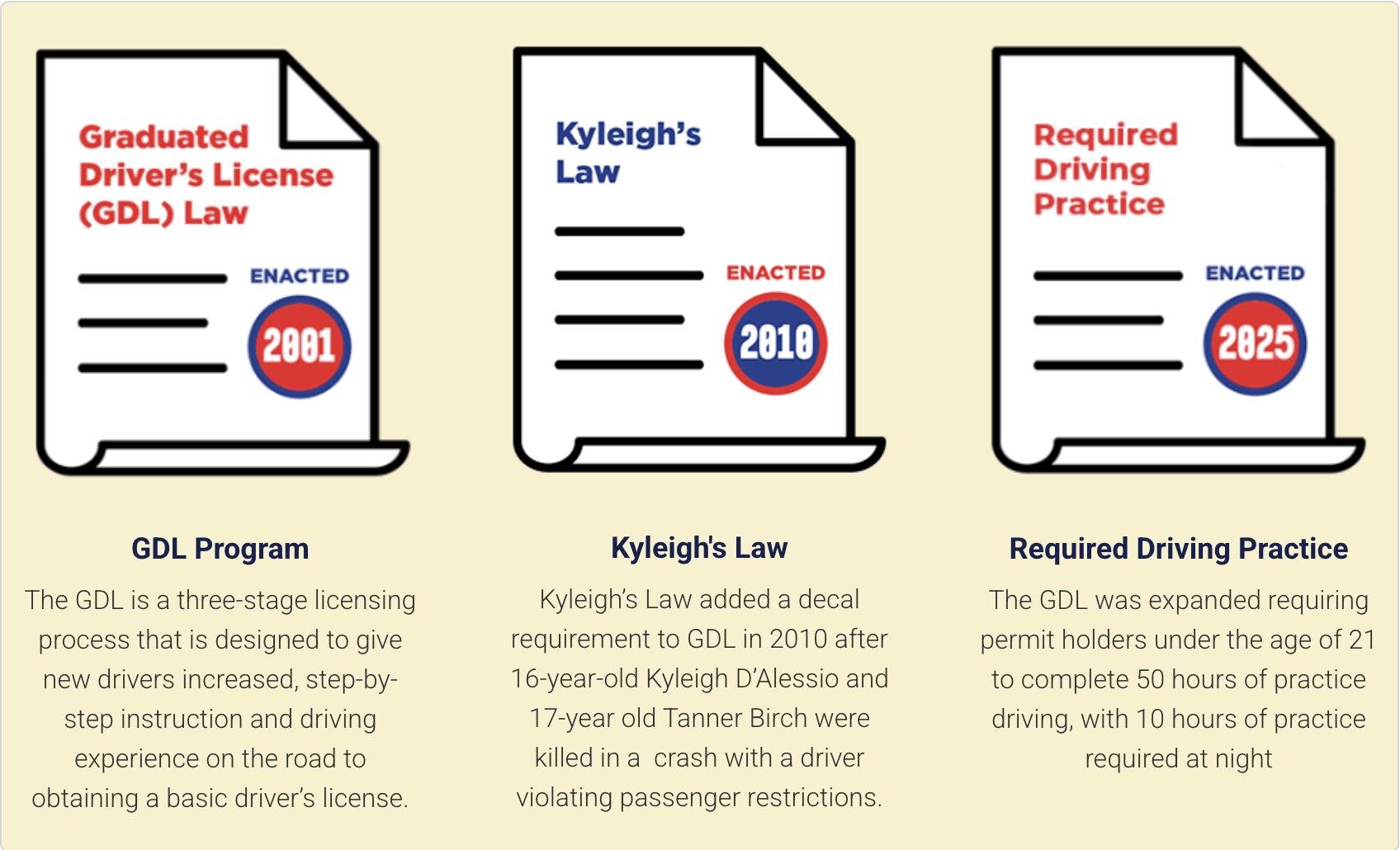 🪧 GDL Decals - Drivers under 21 must display red decals on the front and back license plates.